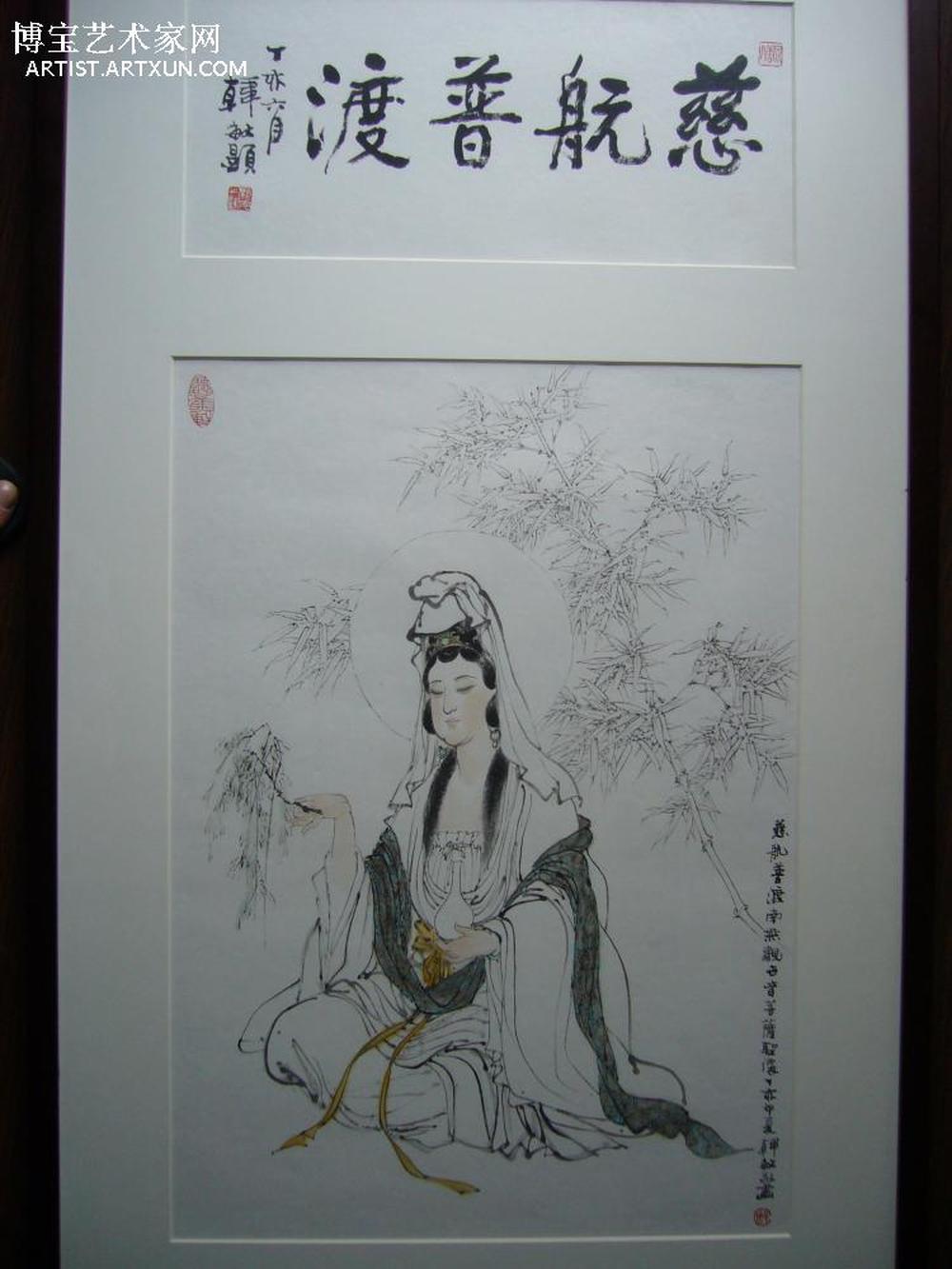 韩敏:1929年出生。幼承庭训,耽心翰墨。曾任上海人民美术出版社创作员,专事连环画、年画创作,上海市第九届政协委员,上海书画研究院院长。现为中国美术家协会会员、上海市美术家协会理事、上海文史馆馆员。作品多次参加国内外重大展览,先后赴新加坡、澳门等地举办个人画展,影响广泛。无论花鸟草虫、鳞介走兽,以至画法,皆所精善。所作人物,秀美灵动,形具神肖,其仕女尤为柔媚,气清韵雅,深得好评。